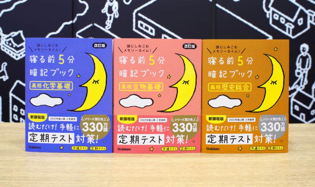 昨年10月に発売された『高校古文・漢文 改訂版』『高校地学基礎 改訂版』に加えて,今回,『高校化学基礎 改訂版』『高校生物基礎 改訂版』『高校歴史総合』が新たに発売され,高校シリーズ全5点がそろいました。寝る前に,たった5分で効率的に知識をインプットしたい高校生のみなさん,ぜひ,お近くの書店やネット書店でチェックしてみてください。