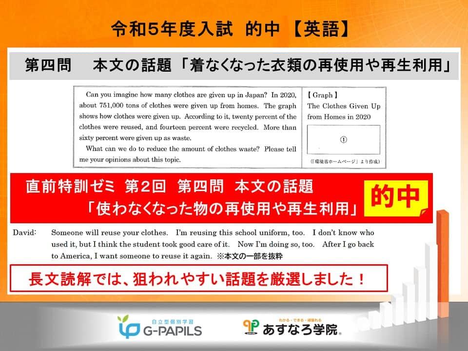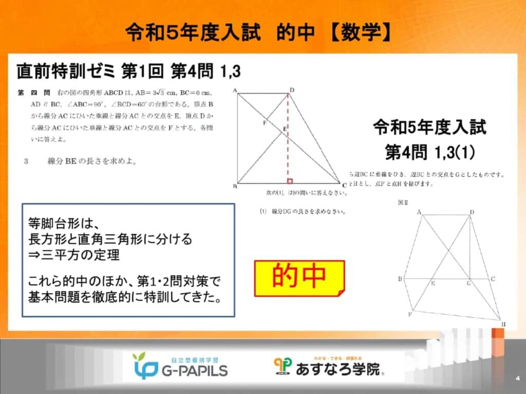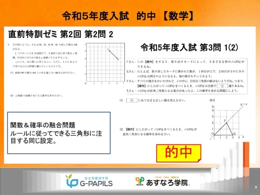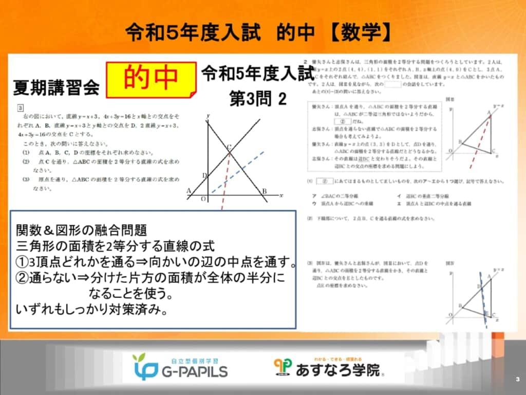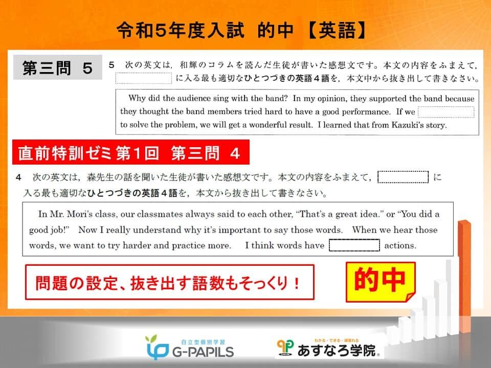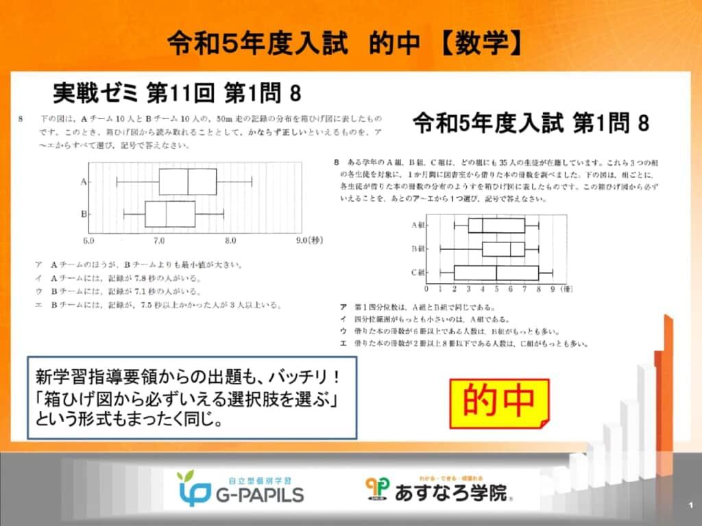 宮城県で43年を数える総合進学塾あすなろ学院では、自慢の入試対策カリキュラムから、今年も多数の問題が的中致しました。