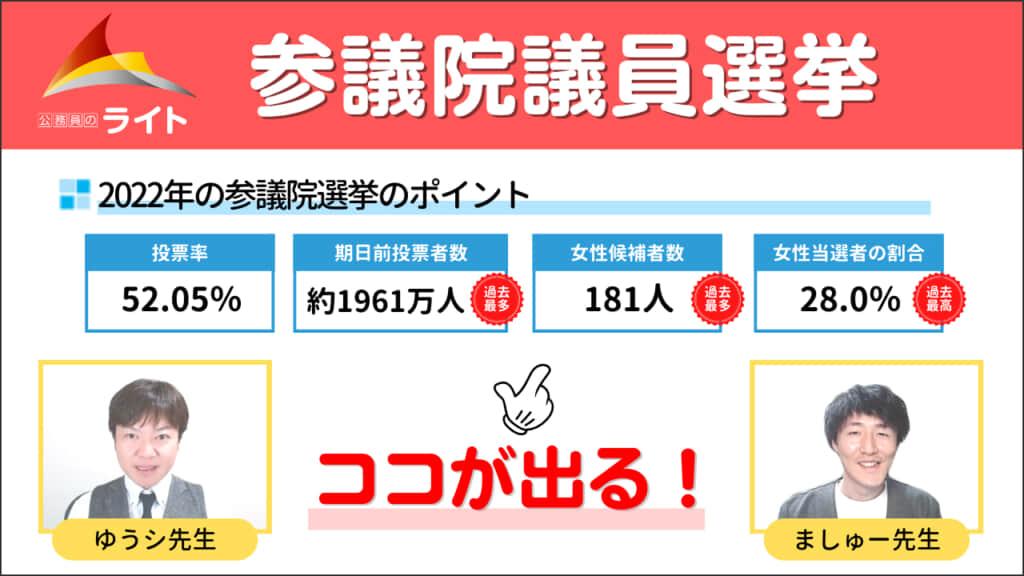- 99.7%出る「参議院議員選挙」をはじめ、高確率で出題されるテーマが厳選された解説動画