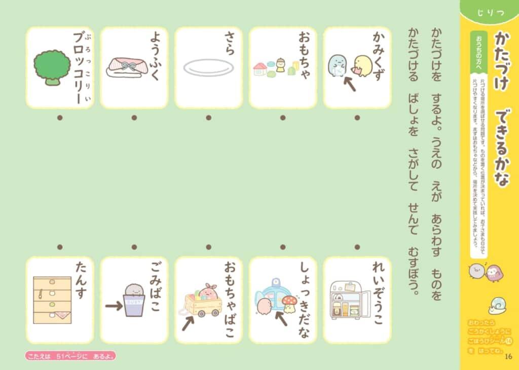 - 片づけるものと場所の組み合わせを線でつなぐ問題