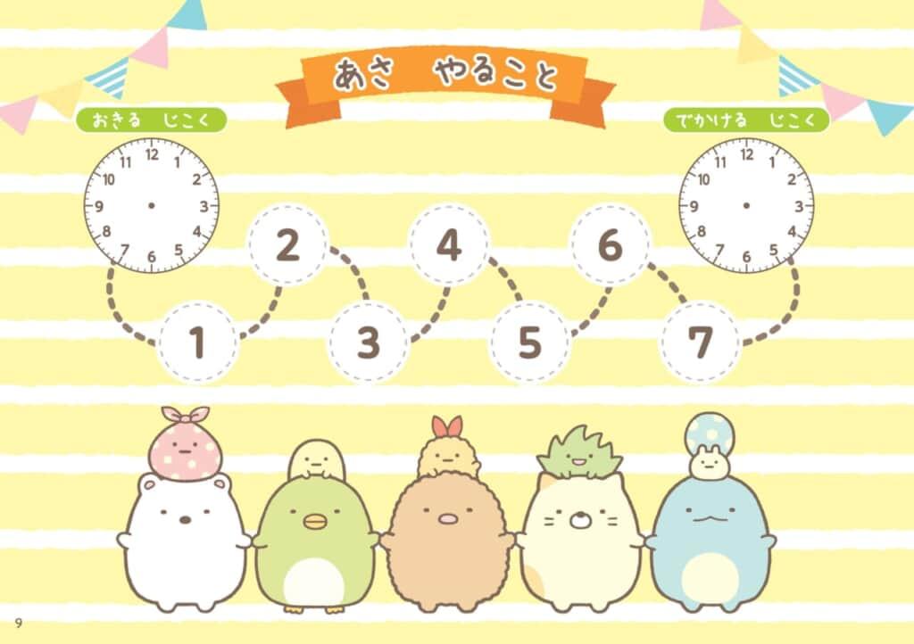 - おしたくシートは、朝(写真上)と夜(写真下)の2種類。時計のイラスト部分には、朝起きる時刻など、覚えておきたい時刻を書き込みます