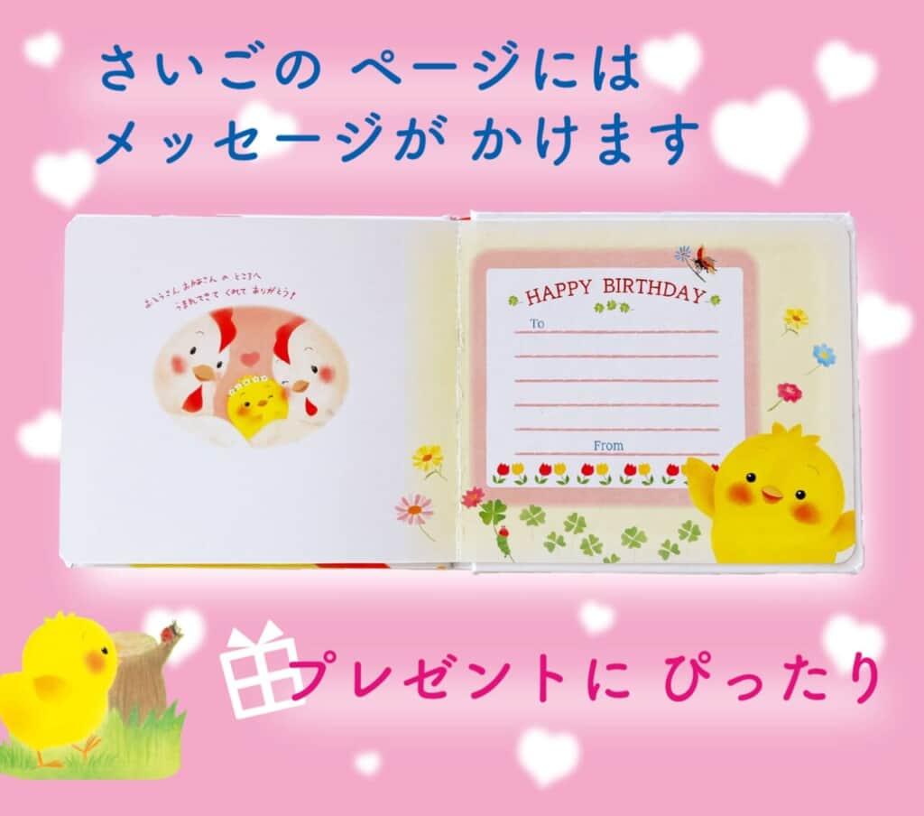 - 『ぴよちゃんの おたんじょうび』本文より。メッセージが書けるカード風ページ