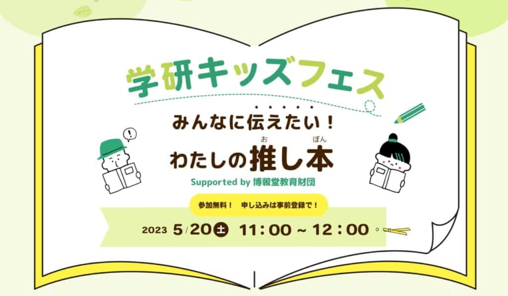 株式会社学研ホールディングス(東京・品川/代表取締役社長:宮原博昭)は、2023年5月20日(土)に、無料オンラインイベント「学研キッズフェス みんなに伝えたい!わたしの推し本 Supported by 博報堂教育財団」を開催します。開催に伴い、特設サイト( https://www.gakken.jp/kidsfes/oshibon2023may/ )をオープンしました。