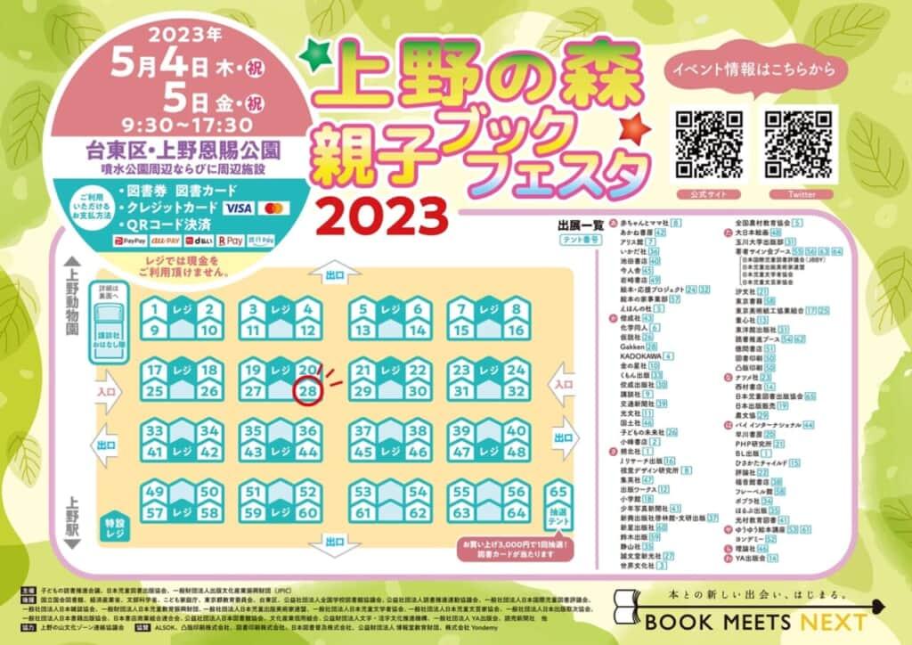- 「上野の森親子ブックフェスタ2023」会場マップより、GakkenブースはNo.28(マップ内、丸囲み部分)