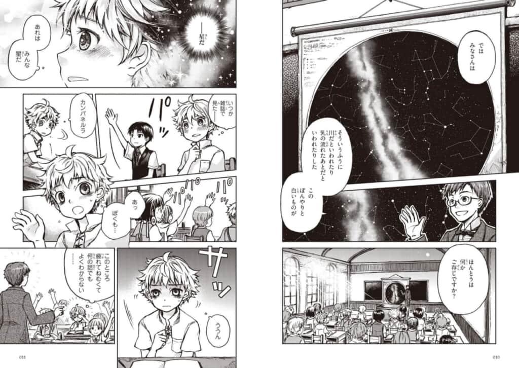 - 宮沢賢治『銀河鉄道の夜』を原作にコミカライズ。「Chapter1 午後の授業」より冒頭のシーン
