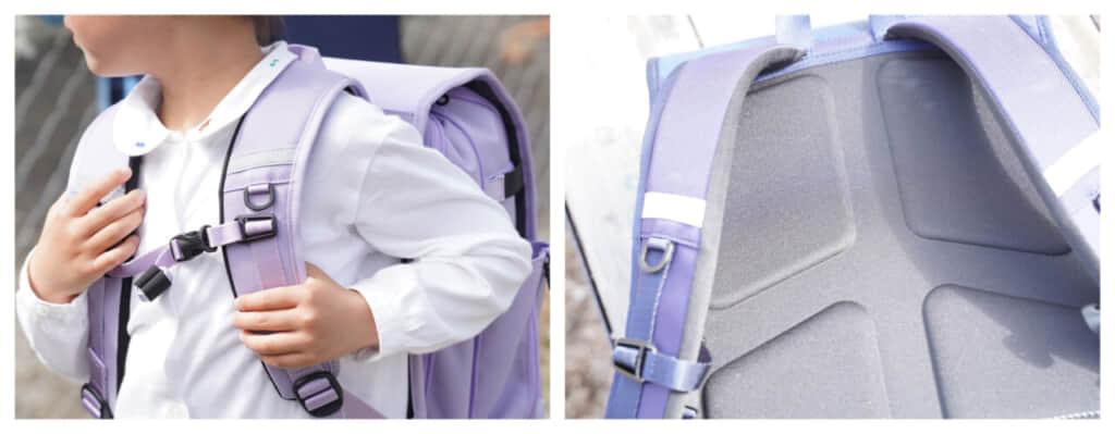 重量がある革製のランドセルは、お子さんの身体に大きな負担となるとお悩みの声が多く聞かれます。この課題を解決すべく、本体重量はもちろん、荷物が入った状態での重量を大幅に軽減するため、負荷を分散する作りのリュックタイプで設計。それでありながら、デザインは学校生活になじみやすいランドセル型で仕上げられています。保護者の方や多くの小学生のヒアリングを通して、軽さと、お子さんの使いやすさを重視した設計の通学用ランドセル型リュックです。