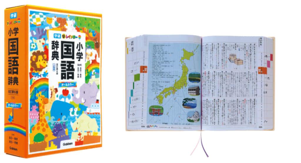 今回、学研オリジナルの予約特典として、小学生向けでも人気の国語辞典『新レインボー小学国語辞典』をセットでお届けいたします。