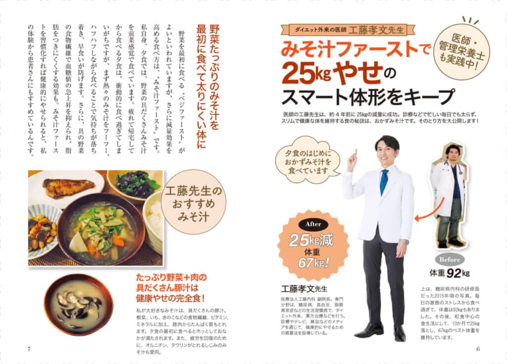 そんなおかずみそ汁の食べ方をテレビの健康番組でひっぱりだこの医師、減量外来のドクターが教えます!著者自身、この習慣を続けて25kgの減量に成功! その食卓も大公開。