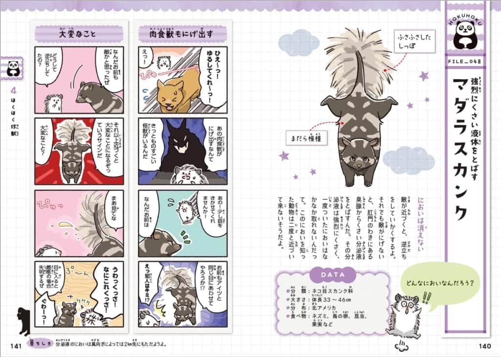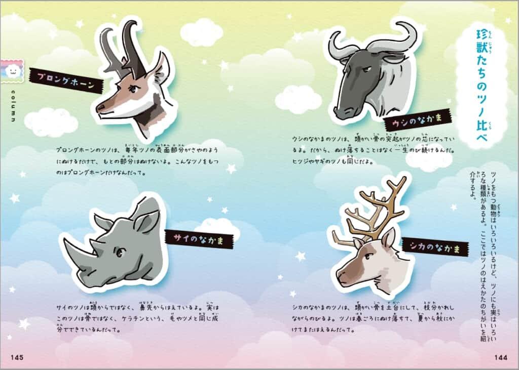 本書では、60種以上の珍獣たちを4コマまんが+しっかり解説でわかりやすく紹介しています。普段はなかなか見ることのできない彼らのひみつを一緒に学んでみましょう。