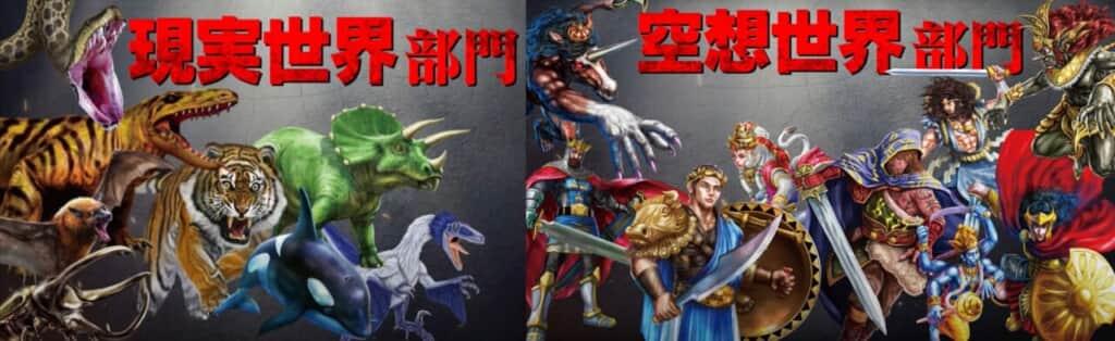 「最強王図鑑」シリーズの全キャラクターを【現実世界部門】と【空想世界部門】に分け、それぞれについて