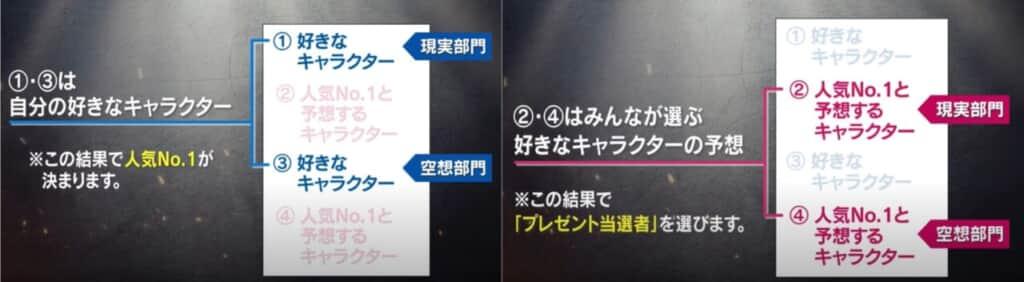 (2)は人気No.1になるキャラクター予想クイズの回答となります。