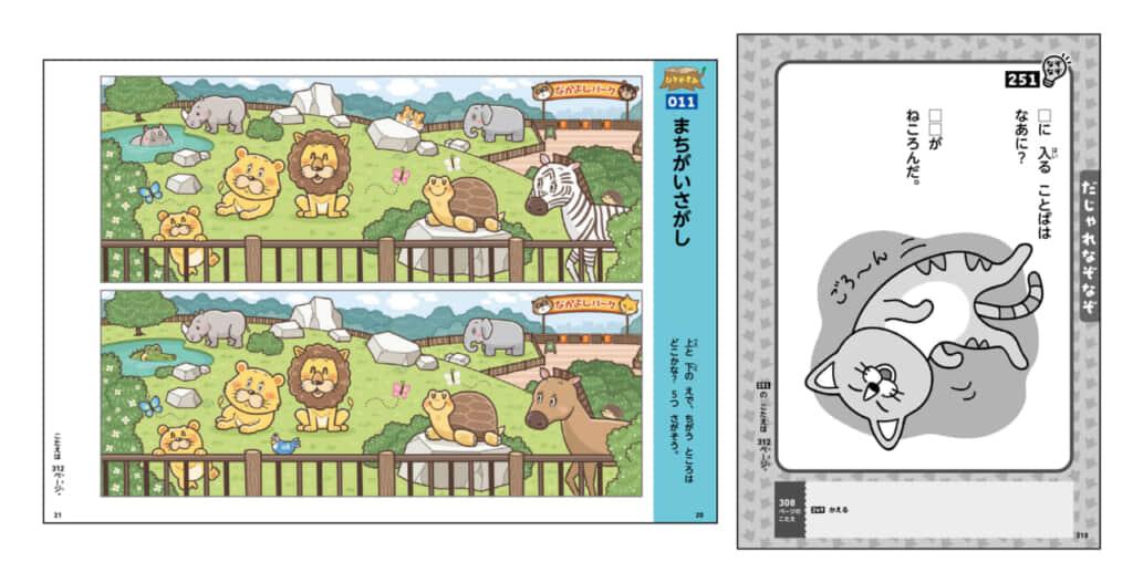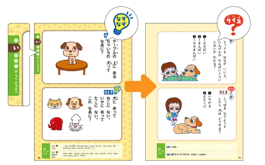 テーマを動物に絞ったことで、名前や特徴を手掛かりに、さまざまな視点から深く考え、答えを導く練習ができます。また、交互に出題されるなぞなぞとクイズで、思考の仕方を切り替える力がつきます。