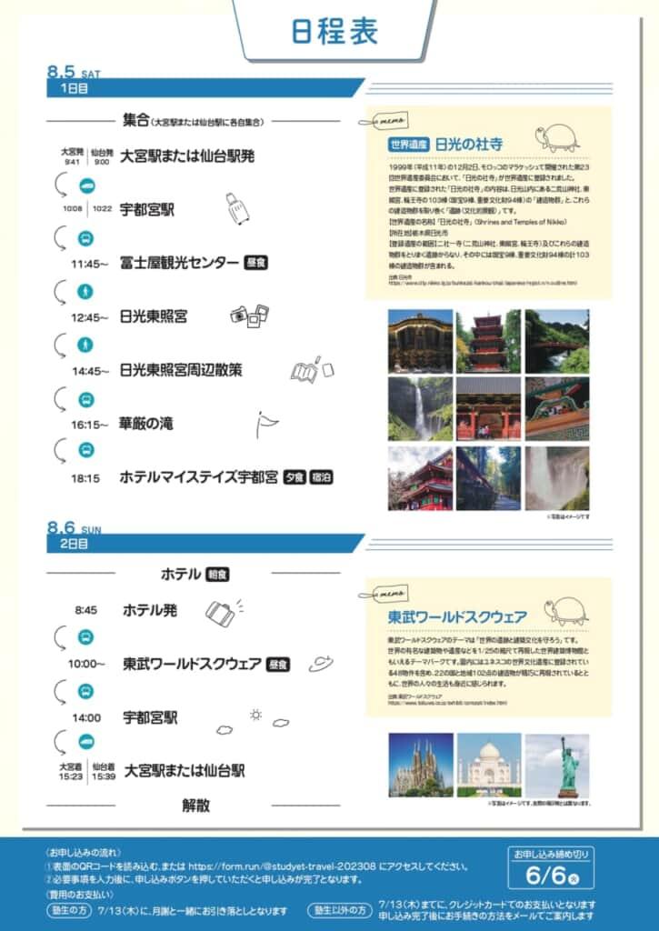 | 日程 | 令和5年8月5日(土)~8月6日(日)大宮駅または仙台駅集合・解散 |