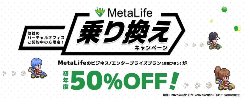 2023 年6月1日、株式会社 学研ホールディングス(東京・品川/代表取締役社長:宮原博昭)のグループ会社、株式会社ベンド(本社:東京都千代田区、CEO近藤潔)は、2023 年9月30 日までの期間限定で、他社バーチャルオフィスサービスからMetaLifeに乗り換えされる法人および団体を対象に、MetaLifeの年額プランを初年度50%OFFで提供する特別プロモーションを実施することを発表しました。