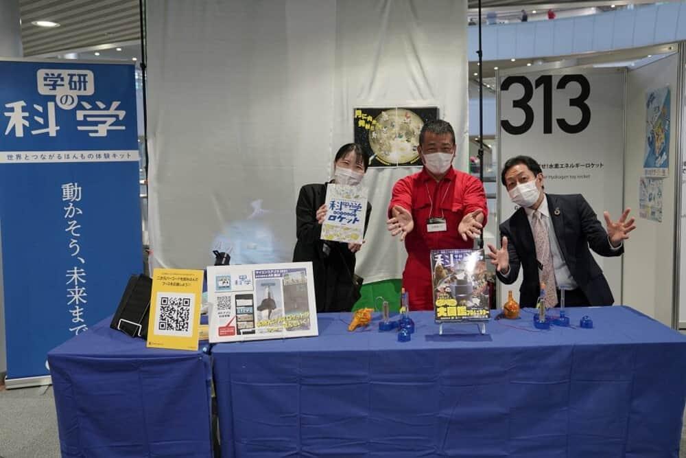 - サイエンスアゴラ2022のようす。Gakkenは「科学」のふろくの「水素エネルギーロケット」を飛ばす体験ができるブースを出展し、好評を博した。