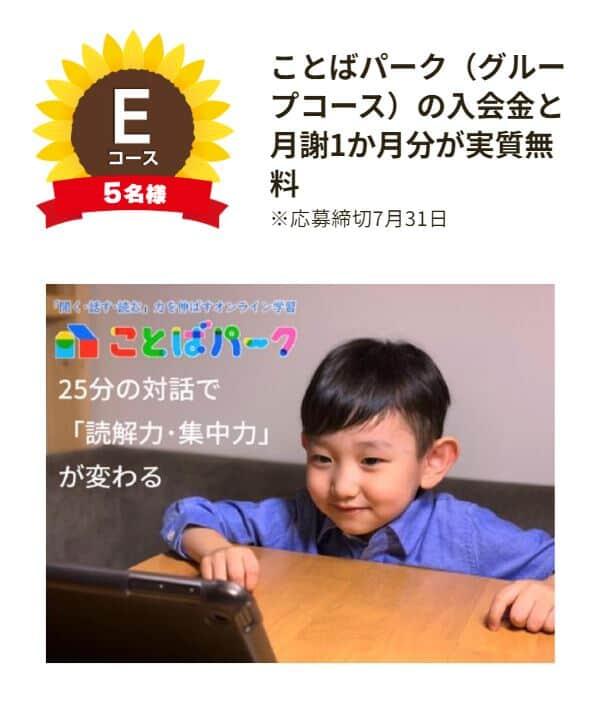◆Eコース ことばパーク(グループコース)の入会金と月謝1か月分が実質無料(5名様)