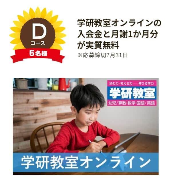 ◆Dコース 学研教室オンラインの入会金と月謝1か月分が実質無料(5名様)