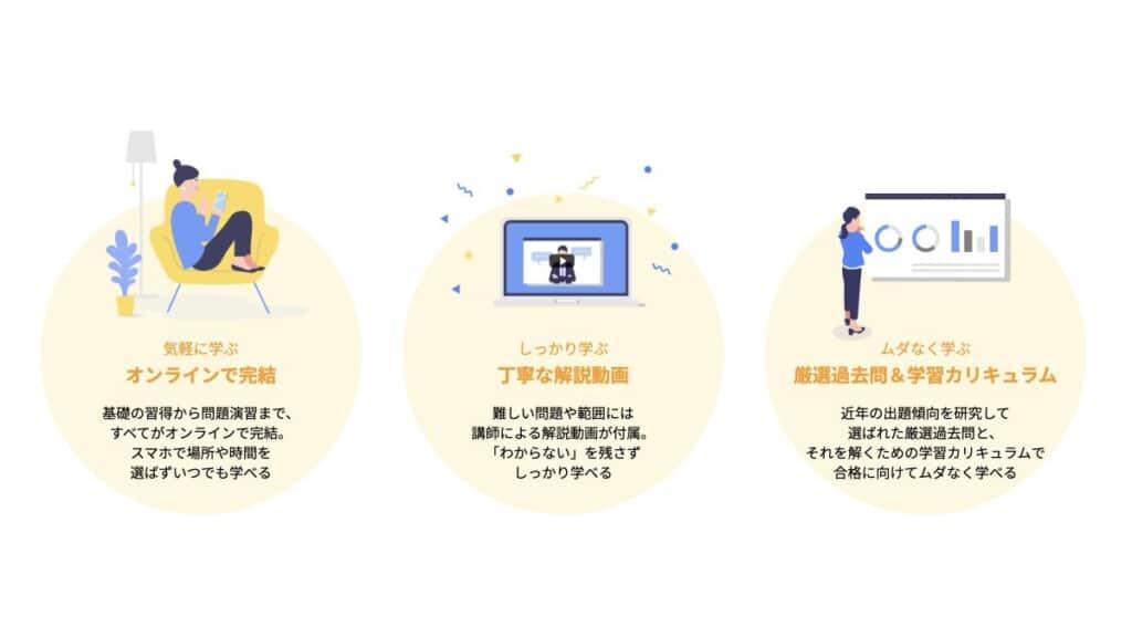 動画によるインプットから問題演習、解説までオンラインで学習でき、いつでもどこでも学ぶことができます。