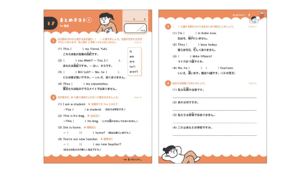 それぞれの単元の最後には、表裏1ページ完結の「まとめテスト」つきで、学習の定着度を測ることができます。