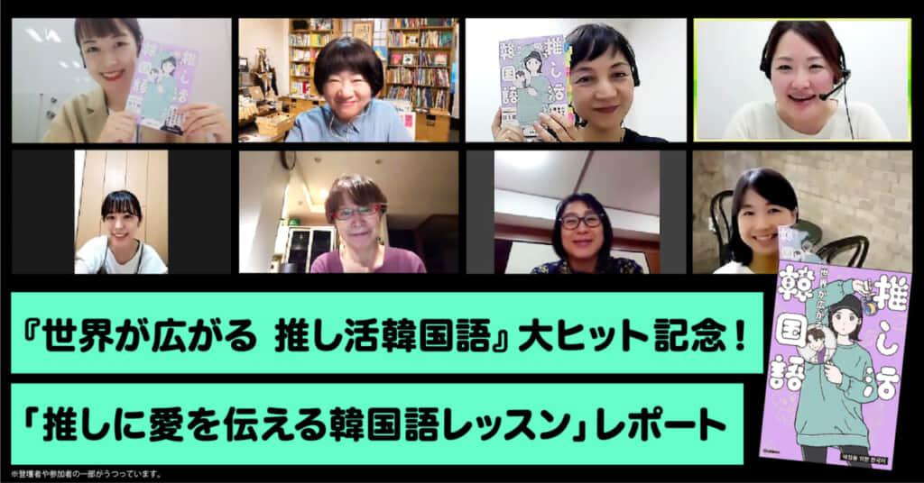 K-POPや韓国ドラマの勢いが止まらない中、今年3月に発売した韓国語の推し活単語&フレーズ集『世界が広がる 推し活韓国語』(Gakken)の大ヒットを記念し、2023年6月16日(金)、韓国書籍専門書店CHEKCCORIにてオンラインイベントが開催されました。本書の著者のひとりである、アイケーブリッジ外語学院の韓国語講師・柳志英(リュウ ジヨン)さんと、監修者のオタク女子ユニット劇団雌猫のメンバー・ひらりささんが登壇。K-POPファンや韓国語学習者が参加し、大盛況のうちに終了しました。