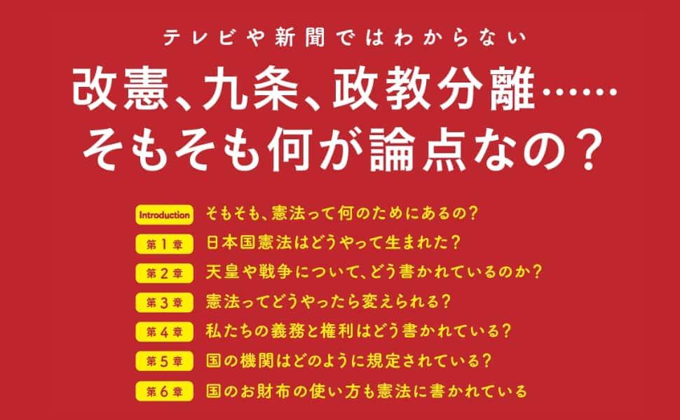 憲法は守るべきか、変えるべきかの議論の前に、私たちは「憲法とはなにか?」ということを本当に理解しているでしょうか? そこで、憲法の成り立ちから、改正に関する議論、戦争放棄、私たちの生活に密着した権利と義務など、日本国憲法に書かれている内容を池上彰先生がイラストでわかりやすく解説します。付録に、日本国憲法全文を収録しています。