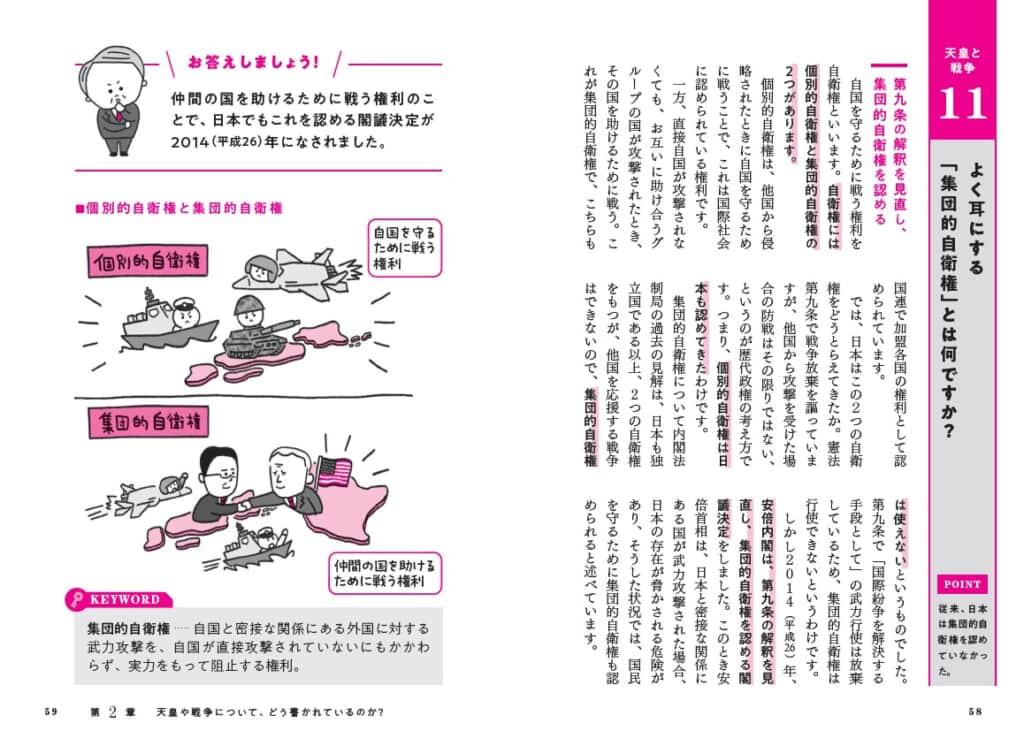 「まずは基礎に立ち返ること。この場合は、日本の憲法は、軍事力や自衛力、戦争に関してどんな規定をしているのか、過去にどんな議論があったのかを知ることです。その上で、いまの憲法をどう考えればいいのか。憲法は変えるべきか、守るべきかを考えることができるようになるでしょう。」(本書より引用)