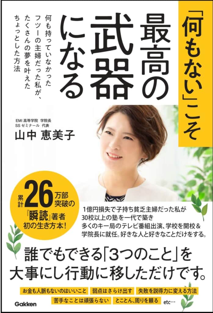 「グループ30校を擁する学習塾を一代で築きあげた経営者」、「『瞬読』創始者」、さらに「学校の学院長」と3つの顔で活躍中の山中恵美子さんが実践してきた「人生成功の法則」を惜しみなく綴った、待望の「生き方本」です。