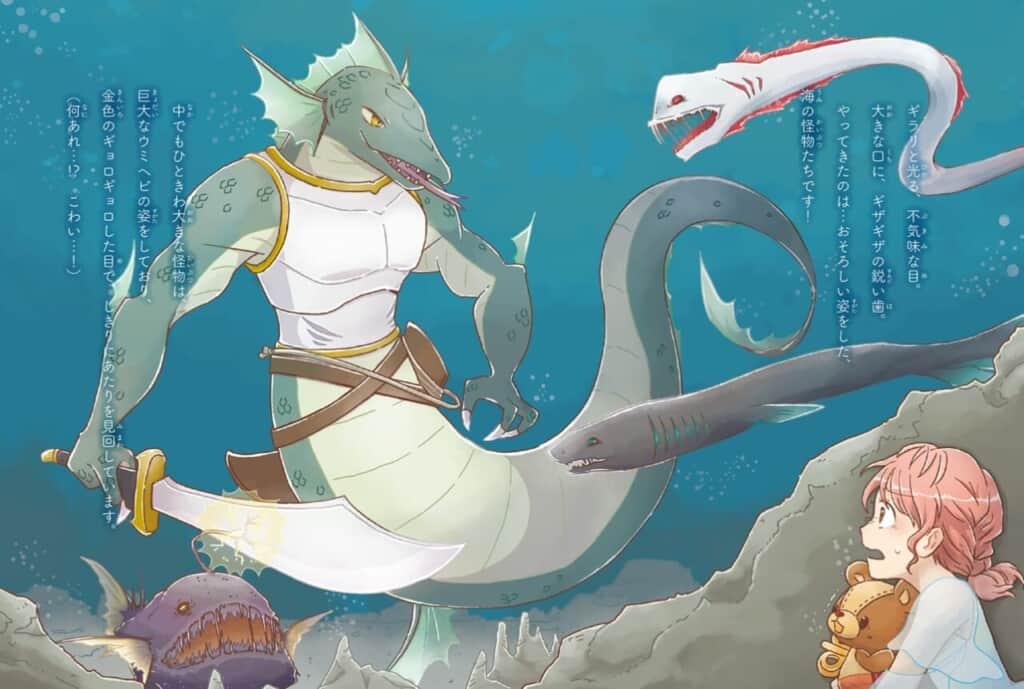 - 本文ページより。恐ろしい海の怪物たちが立ちはだかる