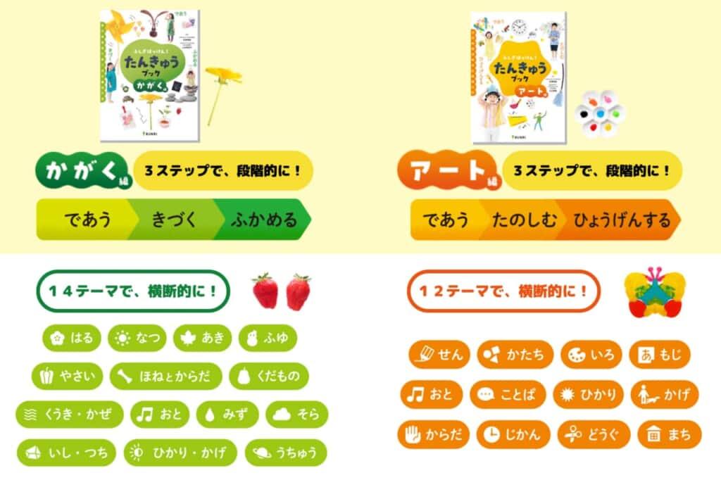 保護者向けの別冊ガイドブックやたんきゅうシートなどの付録も組み合わせながら、お子さまひとりひとりに合った方法で「たんきゅう」を広げ・深めていきます。