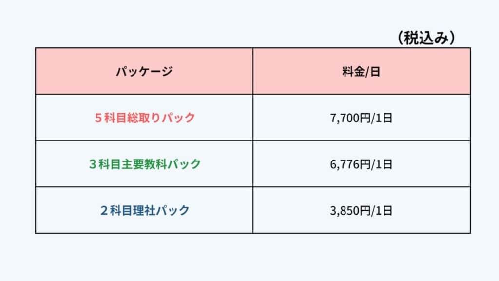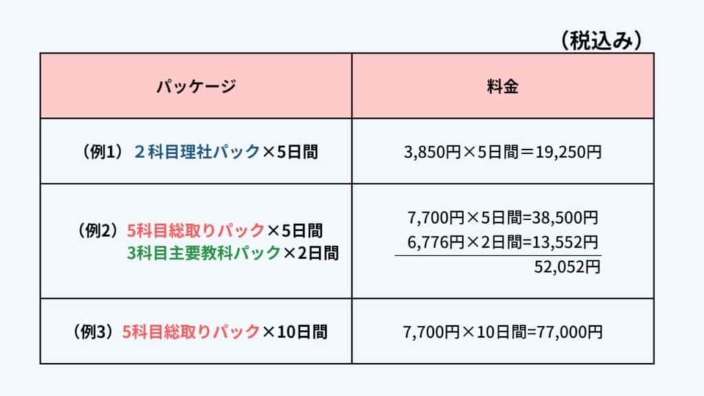 ただし、「数学だけ」「数・理だけ」など、パッケージに該当しない受講はできません。