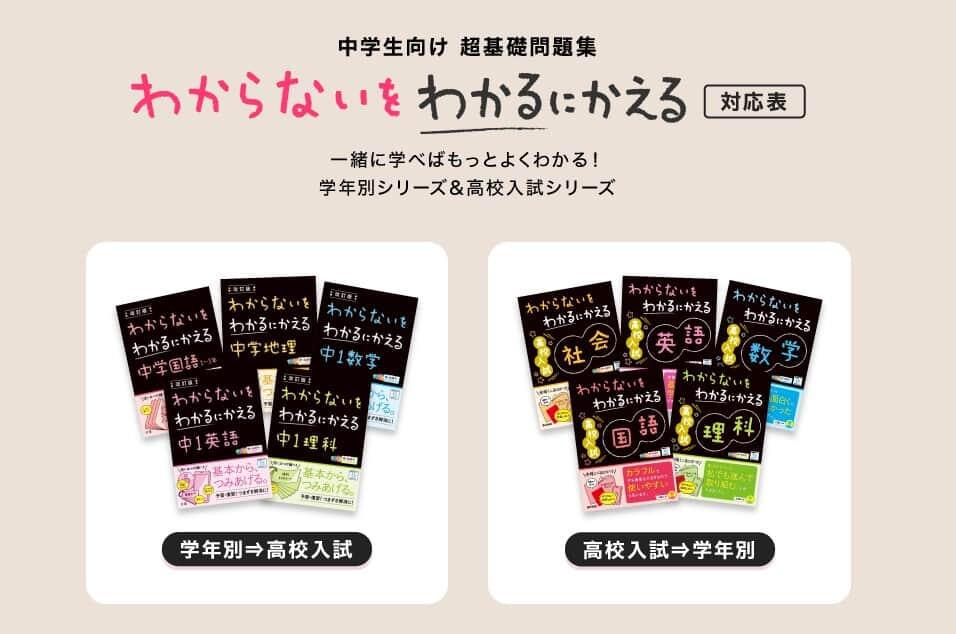 『わからないをわかるにかえる 学年別』シリーズ、『わからないをわかるにかえる 高校入試』シリーズの中から各1冊の計2冊購入で応募できるキャンペーンを開催中。