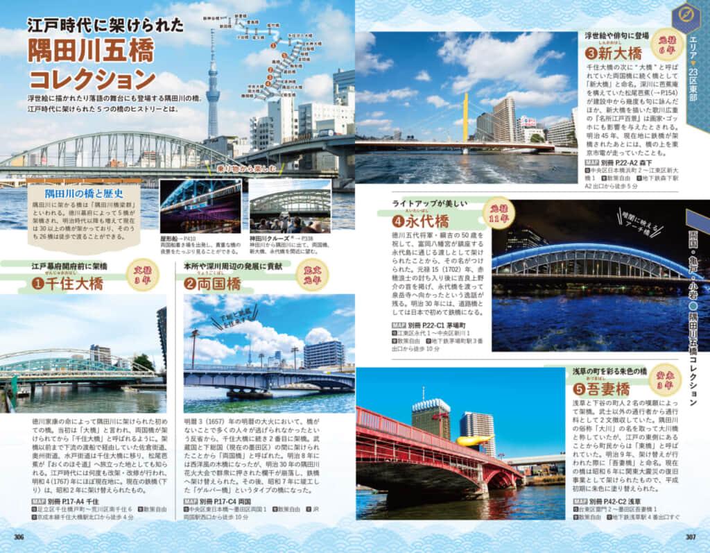 人気の観光地はもちろん、全23区の各エリアの見どころ・街の歴史・歩き方をしっかりガイド。さらにエリアごとの小特集やコラム、散策プランをたっぷり用意しました。