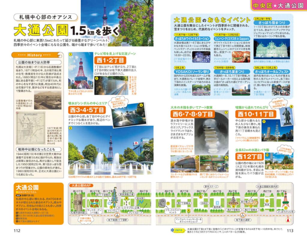 - 大通公園はイラストマップで見どころを紹介。歴史コラムも