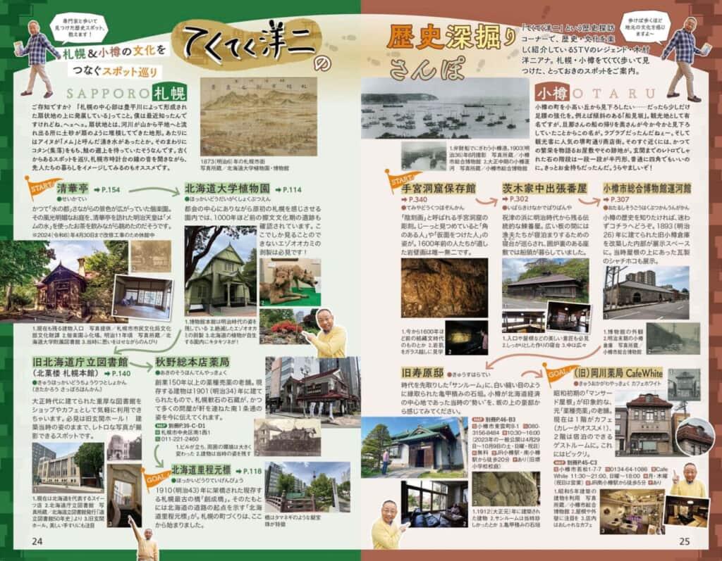 歴史探訪コーナー「てくてく洋二」とコラボし、札幌・小樽の必見スポットをモデルルートで紹介。また札幌・小樽だけの「歴史年表」を6ページ収録。掲載しているお店やスポットにリンクしているので、歴史の舞台を実際に歩くことができます!「北海道の方言」や「あるある」などの特集で文化の深堀りも!