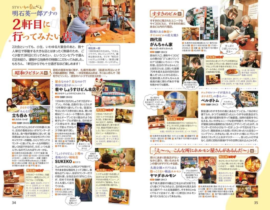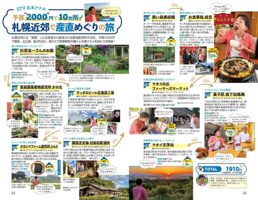 STVが徹底リサーチした「2,000円で10ヵ所まわる」大満足のドライブ旅や木村洋二アナとめぐる歴史探訪コース、またSTVいち呑んべえと言われる明石英一郎アナのディープな行きつけのお店までたっぷりご紹介。撮りおろし情報でいっぱいです。