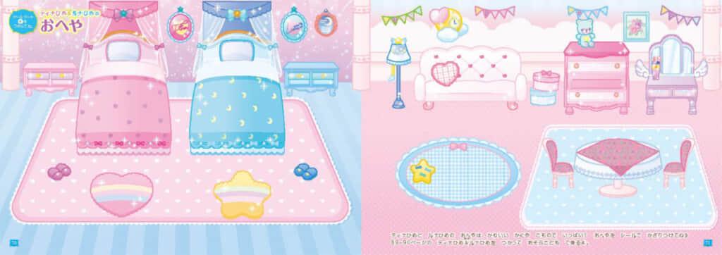 - ティナひめ&ルナひめのお部屋のデコレーション、お気に入りのシールを飾れるクローゼットなどもあり、様々なおしゃれシール遊びが楽しめます。