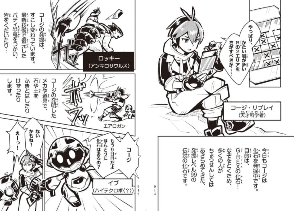 ズバ抜けた頭脳と行動力を活かし、相棒のロボット・イブと共に、人類に文明を授けたとされる恐竜、「G-REX」の化石を探して冒険をしています。
