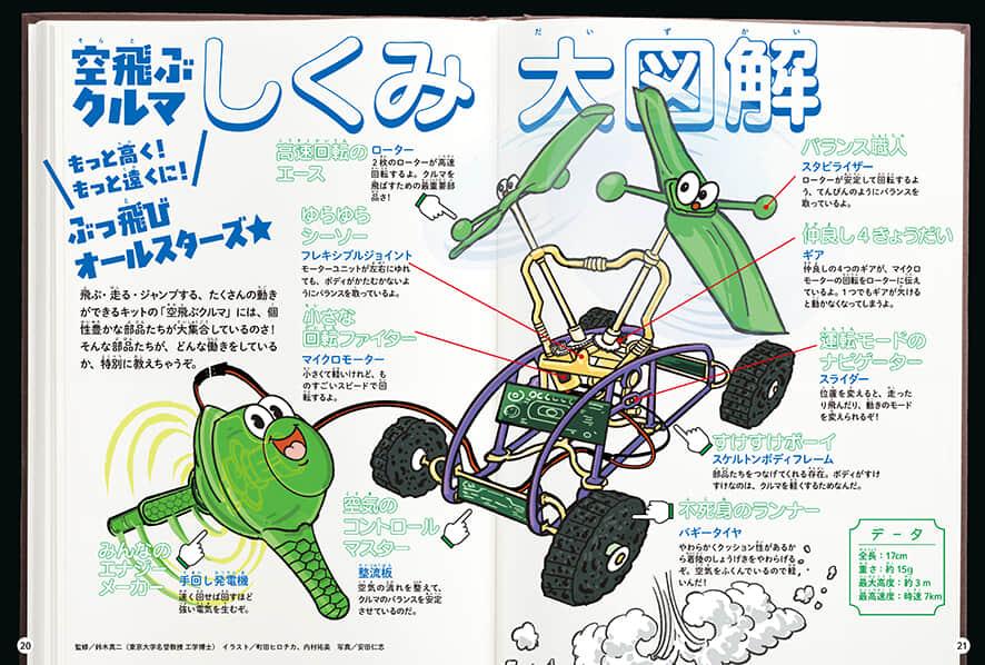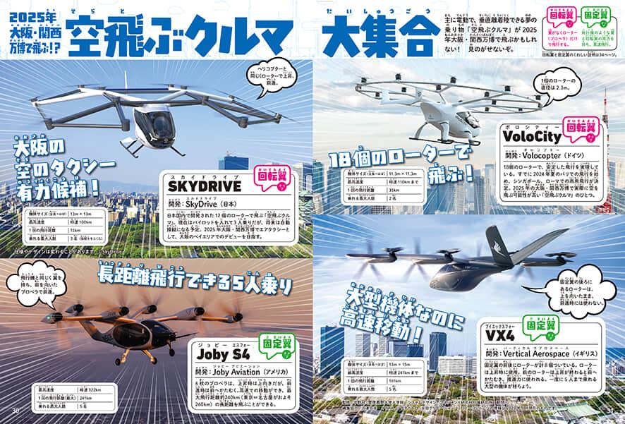 本誌では、空飛ぶクルマの楽しい飛ばし方はもちろん、おどろきがいっぱいの実験工作や、最新の空飛ぶクルマの紹介など、子どもたちの興味をひろげる記事やよみものなどがもりだくさん。手を動かし工夫しながら、自然と考える力が身についていきます。