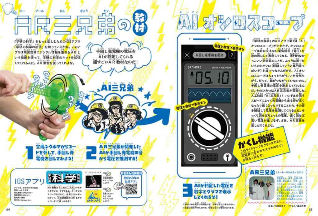 - AR三兄弟が開発した学研の科学オリジナルアプリ「AIオシロスコープ」を楽しめます。