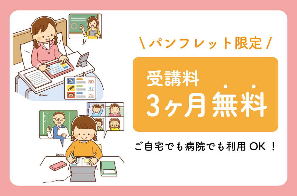 ご家庭のパソコンやタブレットと病院のWi-Fiがあれば、どこでも勉強することができます。また、オンラインライブ授業は全国の仲間と一緒に受講できますが、体力や体調がすぐれないときには画面をオフにして受講したり、録画視聴も可能なので、治療中のお子様も状況に合わせて使用しやすいシステムです。
