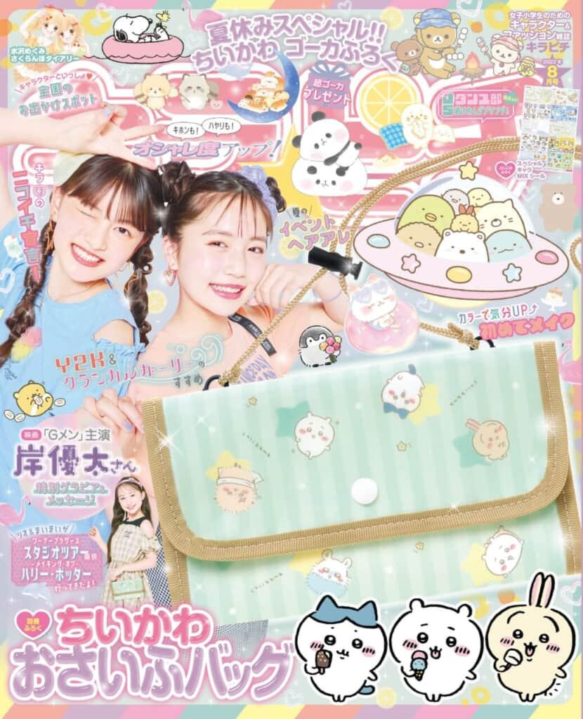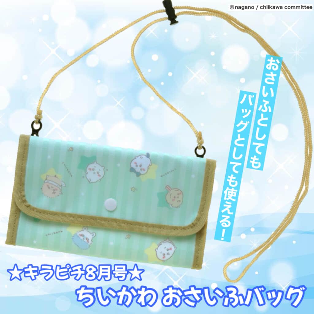 人気キャラクターや最新ファッション、女子小学生の好きなものがいっぱい『キラピチ8月号』の付録は、人気の「ちいかわ」!! 「ちいかわ おさいふバッグ」は、その名前のとおり「おさいふ」にも「バッグ」にもなる、2通りの使い方ができるアイテムだよ! ストラップは取り外しできるから、いろいろな用途に使えてとっても便利♪ サイズも大きめなので、ケアポーチやペンポーチなどとしても大活躍するよ。
