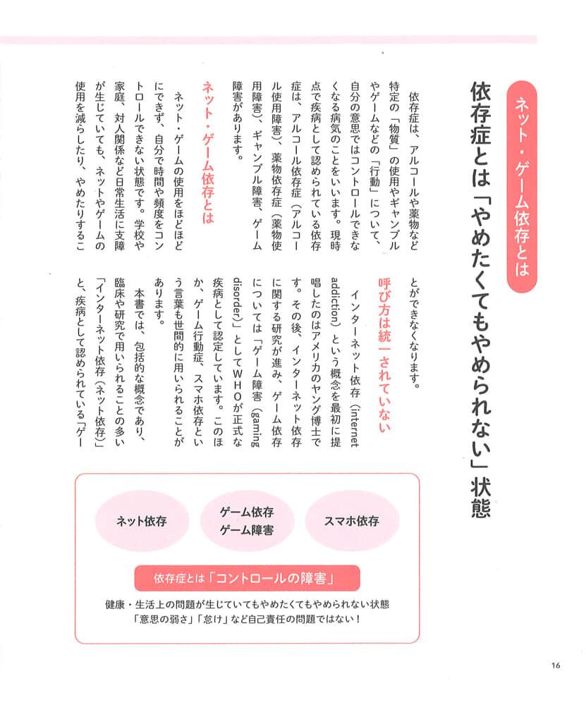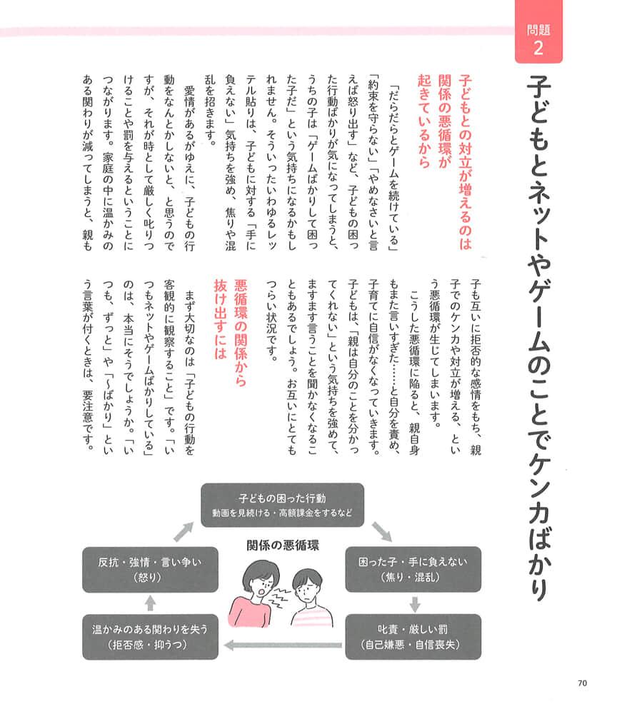 ネットやゲームから離れられない原因は、本人の意志が弱いからではありません。「やめなさい」ときつく叱る、一方的に取り上げるなどは、親子関係を悪化させてしまいます。やらせないのではなく、自分でコントロールができるよう本書を活用して、上手に問題解決していきましょう。