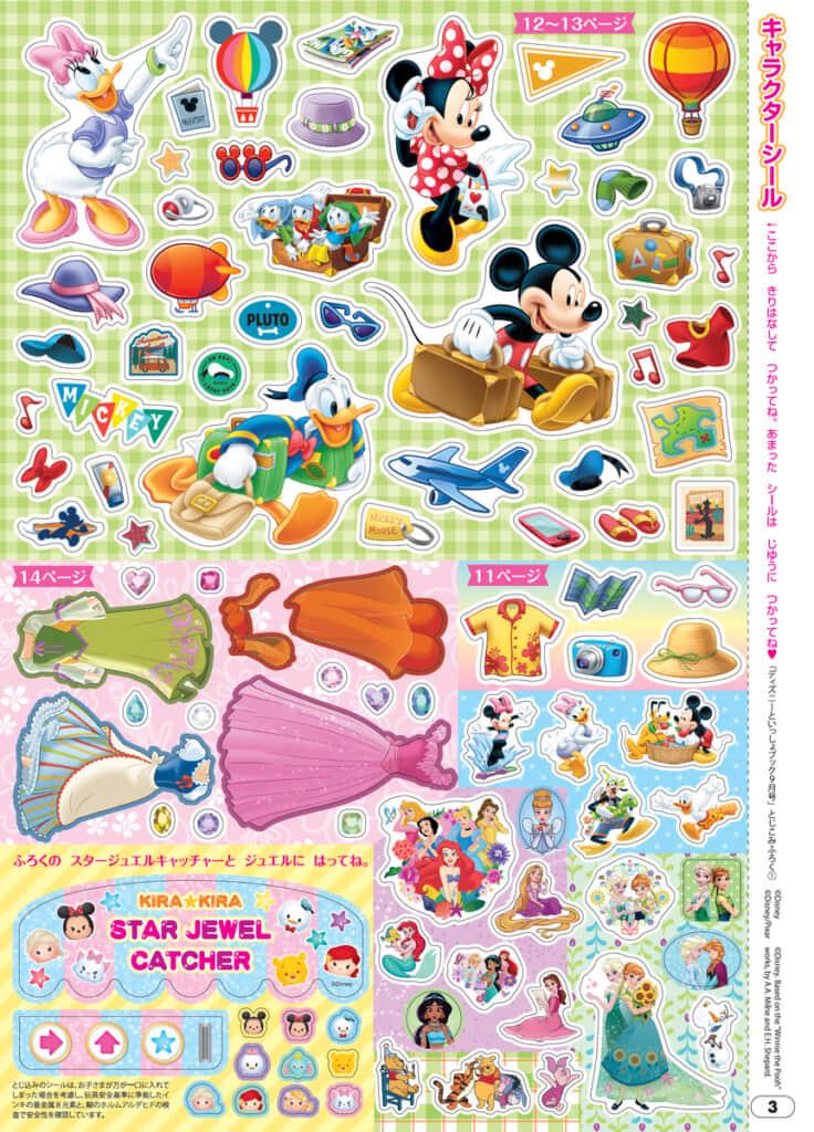 本誌のあそびページと連動したシールです。ディズニープリンセスの着せ替えシールや、旅行を楽しむミッキー&ミニーのシールなど、アクティビティで使えるかわいいシールが盛りだくさん! アナ雪やプーさんなどの人気キャラクターのシールも充実しています♪