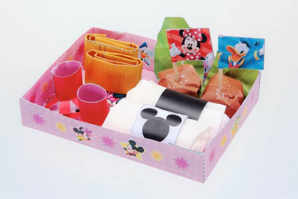 ミッキーやミニー、ドナルドなど、かわいいキャラクターがいっぱいのおべんとうの紙工作キット★ 付録の工作紙とおうちにあるアイテムで、おにぎり、たまごやき、ミートボール、レタス、たこウィンナー、旗、おべんとう箱が作れます! 完成したら箱につめておべんとう遊びをしましょう♪ 上手におべんとうを作れるかな?