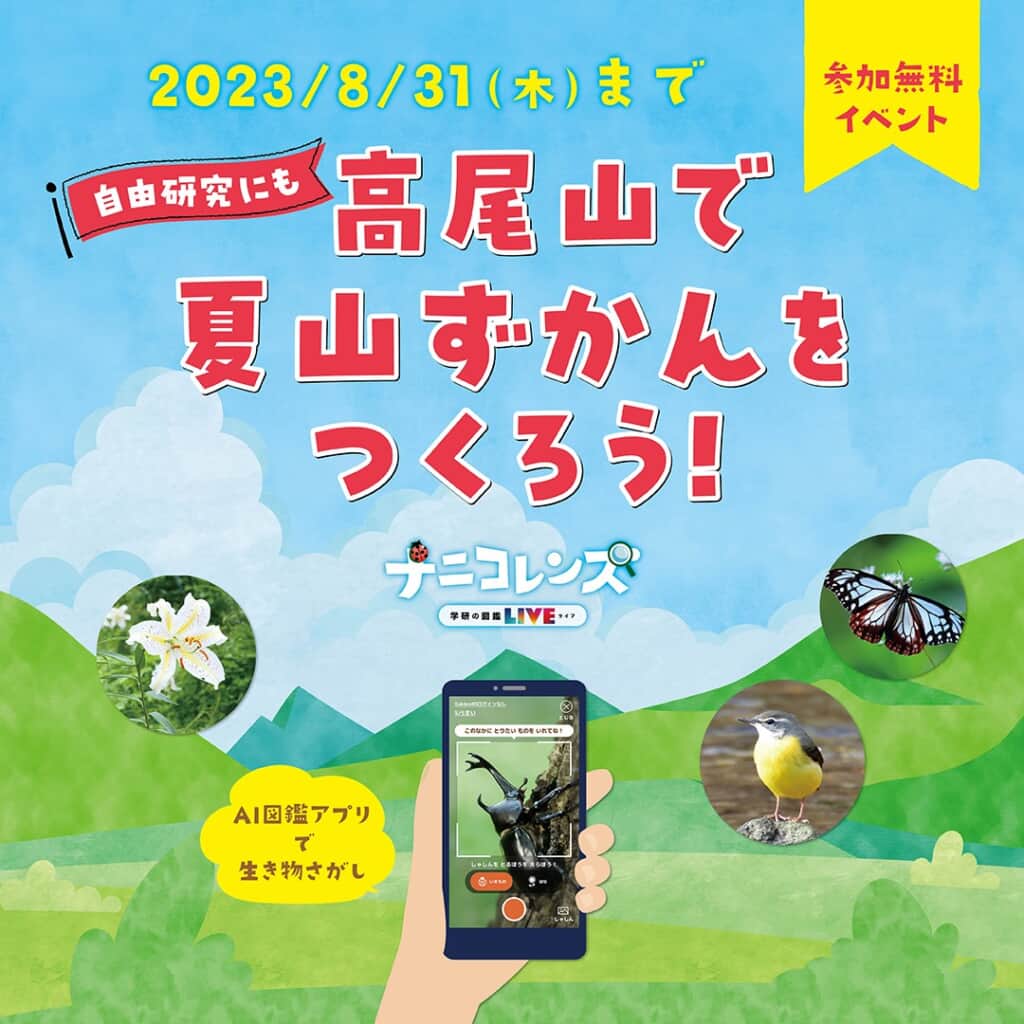 夏休みに合わせて、『ナニコレンズ』とTAKAO 599 MUSEUMの共同イベント「高尾山で夏山ずかんをつくろう!」を実施いたします。