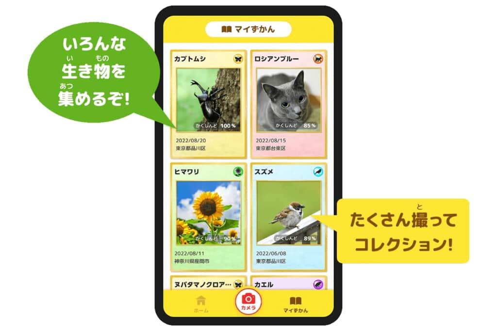 アプリのカメラ画面で写真を撮るだけで、AIが生き物の名前を瞬時に識別!