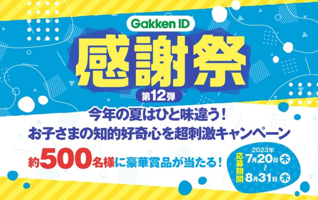 株式会社 学研ホールディングス(東京・品川/代表取締役社長:宮原博昭)は、ウェブサイト【Gakken家庭学習応援プロジェクト「マナビスタ」】にて、「GakkenID感謝祭 第12弾」を 2023年7月20日(木)より開催しています。