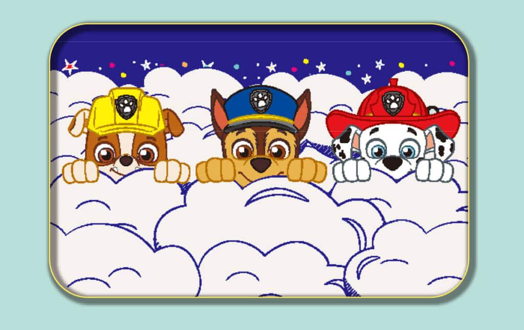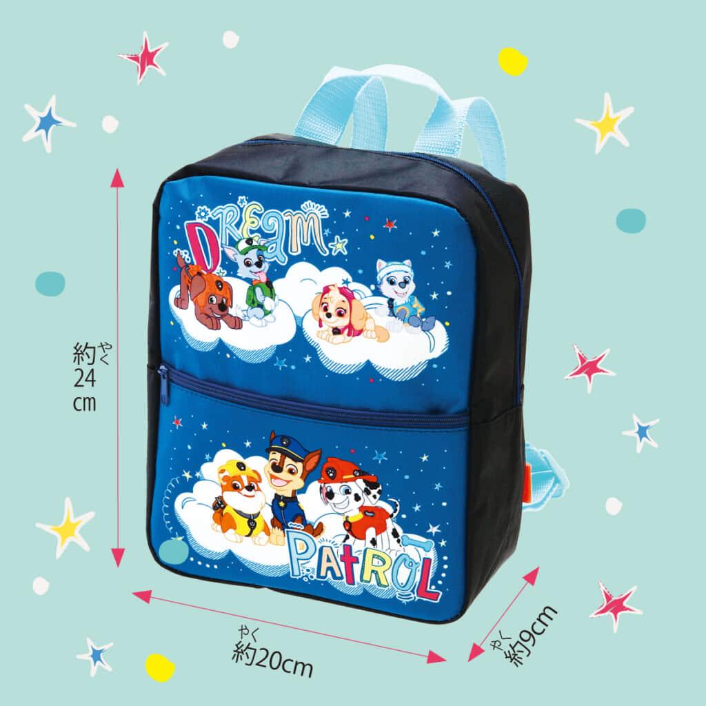 パウ・パトロールたちが雲の上でリラックスしている姿がかわいらしい、ポケットつきリュック。