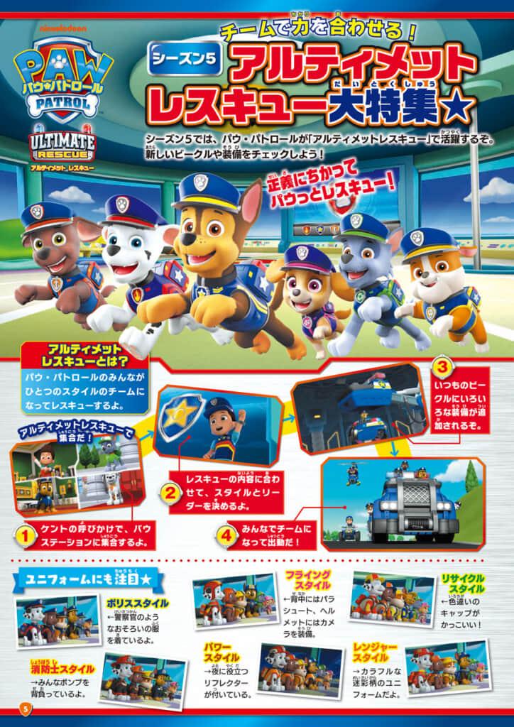 本誌は、この冬公開の新作映画情報やアニメ最新シーズン「アルティメットレスキュー」特集、66の登場キャラクター&22のビークル紹介ページなど“パウフェクト”な内容です!
