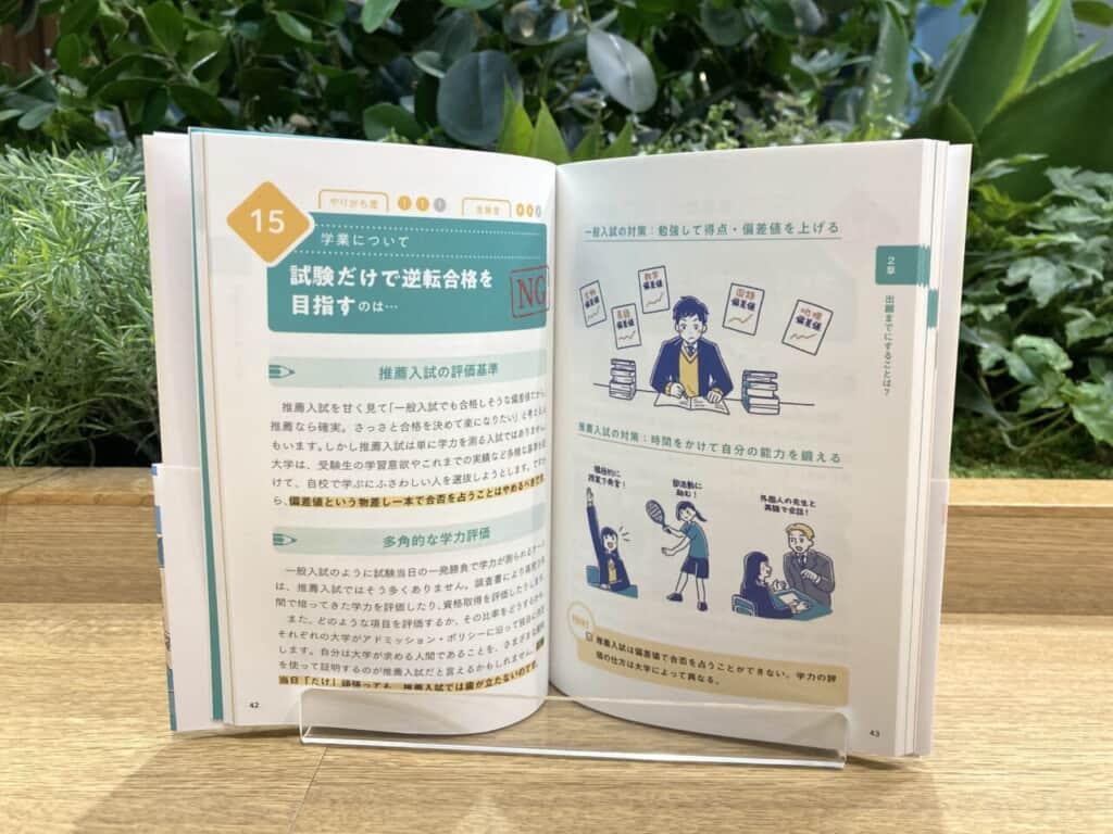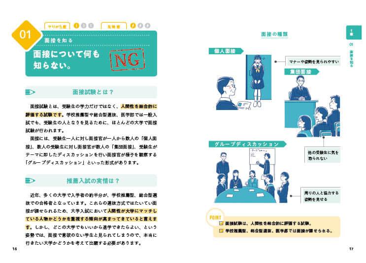 合格率97.5%の総合型選抜専門塾AOIのバックアップのもと、受験生が‟やりがち‟ ‟思い込みがち‟なNG例を厳選。これまでの指導の蓄積データから導かれた、総合型選抜・学校推薦型選抜で合格を目指すなら絶対に知っておきたいポイントが詰まっています。